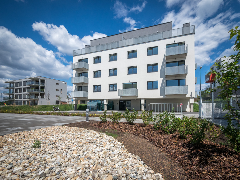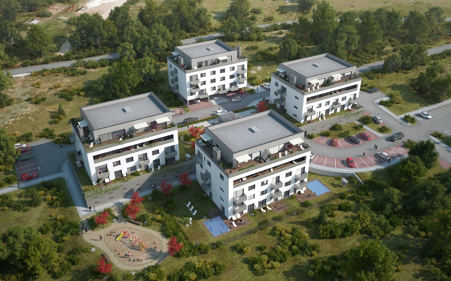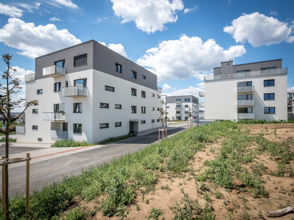 V projektu jsou navrženy dva typy bytových domů, které se liší podle umístění. Západní objekty mají deskový typ a jsou přizpůsobeny terénu, s parkováním pod budovami. Nejjižnější budova graduje do dominantní věže.