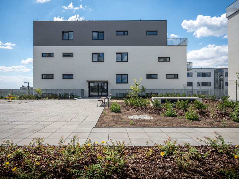 Součástí stavby je pěší uliční prostor u Nových Sadů a vnitřní dvůr, určený pro odpočinek a hrací prvky pro děti. Tyto prostory jsou doplněny pestrou zelení od trávníků přes keřové a květinové patro po vzrostlé stromy.